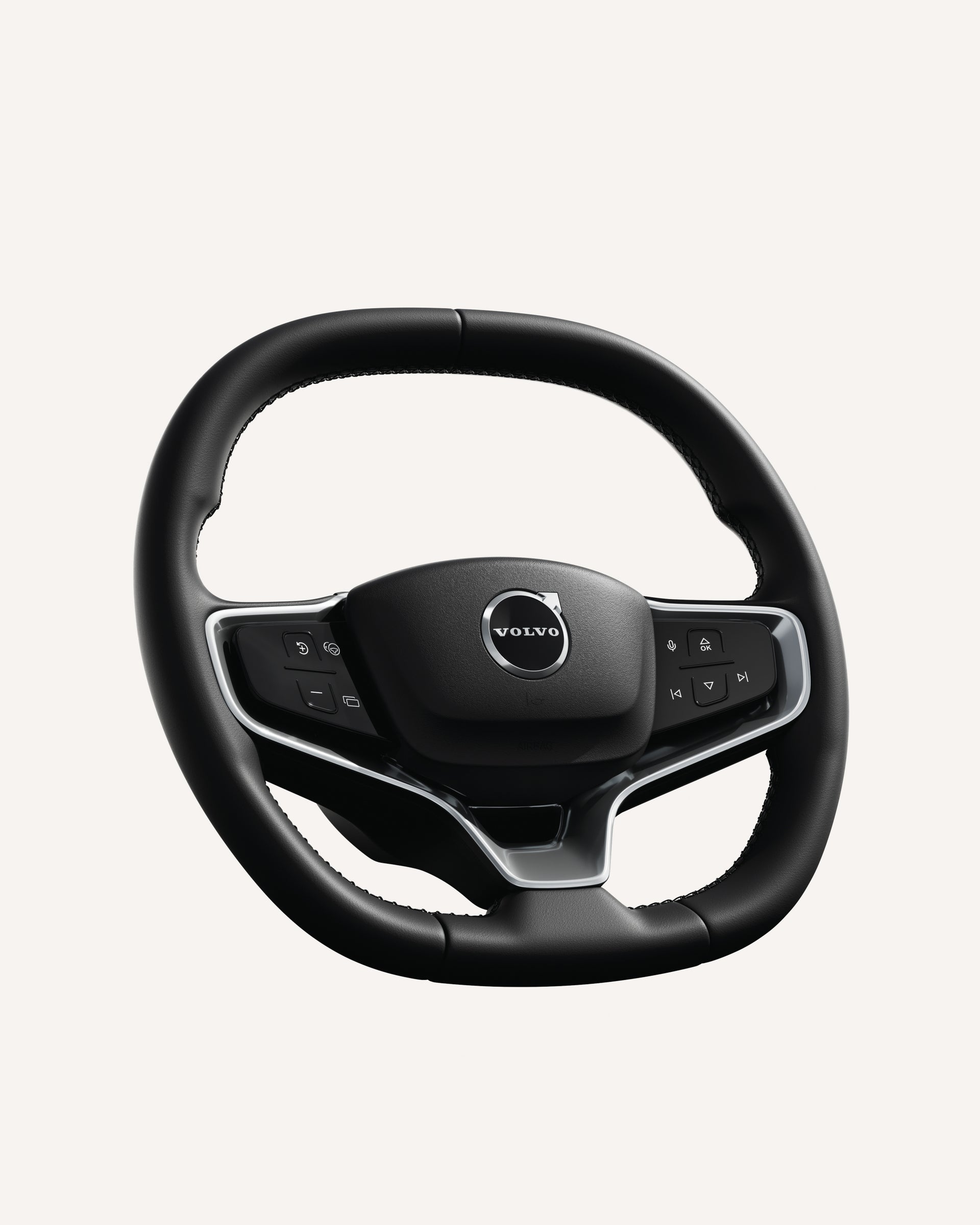 The steering wheel has a sporty look and a grippy feel, making it comfortable to manoeuvre. Driver controls are carefully positioned. Buttons on the left control driver support functions like cruise control and Pilot Assist. There’s also a customisable button to control your favourite function from the wheel. Buttons on the right control audio, infotainment and communication. Warm up the steering wheel via the centre display or the Volvo EX30 app.